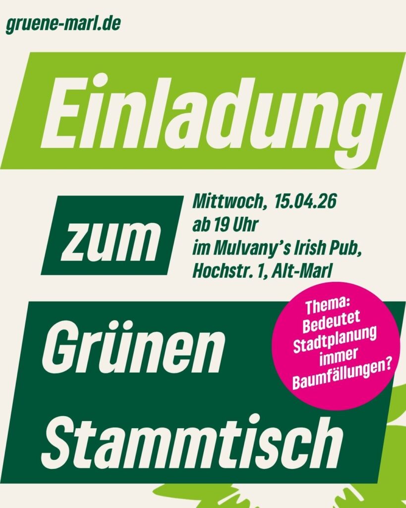 Der Ortsverband Marl von Bündnis 90/Die Grünen hat sich auf seiner jüngsten Mitgliederversammlung neu aufgestellt. Neben den Vorstandswahlen erhielten die Mitglieder einen Überblick über die Jahresplanung sowie eine Information zum aktuellen Jahreshaushalt des Ortsverbandes. Das erklärte Ziel ist es, im gesamten Stadtgebiet mit verschiedenen Angeboten im Laufe des Jahres stärker präsent zu werden, um den Austausch mit Bürger*innen weiter auszubauen. Als Sprecher*innen des Ortsverbandes wurden Beate Kühnhenrich […]